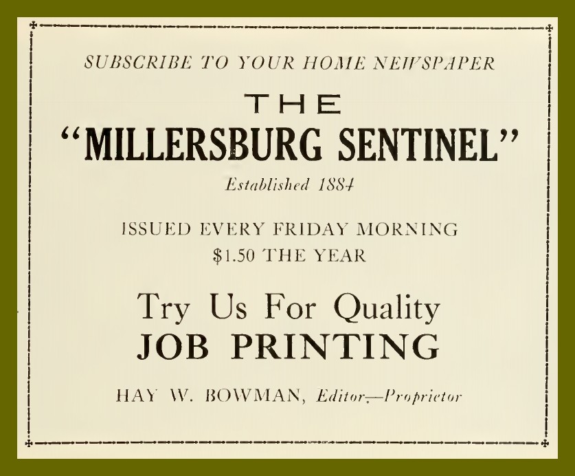 The “MILLERSBURG SENTINEL“, Millersburg, Dauphin County, Pennsylvania.