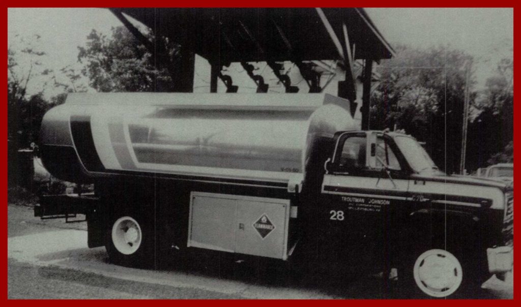 A 1982 advertising photograph for Johnson Oil Corporation – Troutman’s Oil, 308 Center Street, Millersburg, Dauphin County, Pennsylvania 17061.