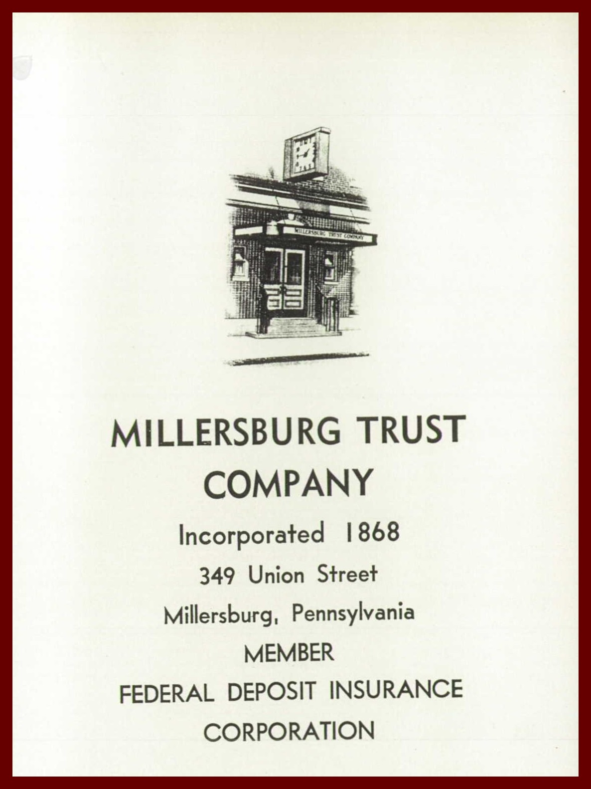 A 1959 advertisement for the Millersburg Trust Company, 349 Union Street, Millersburg, Pennsylvania.