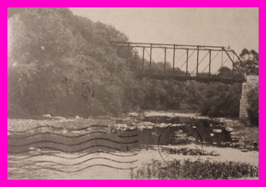 An undated photo from an old post card showing the old steel bridge over the Wiconisco Creek at Millersburg, Dauphin County, Pennsylvania.
