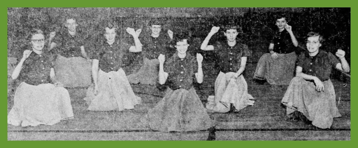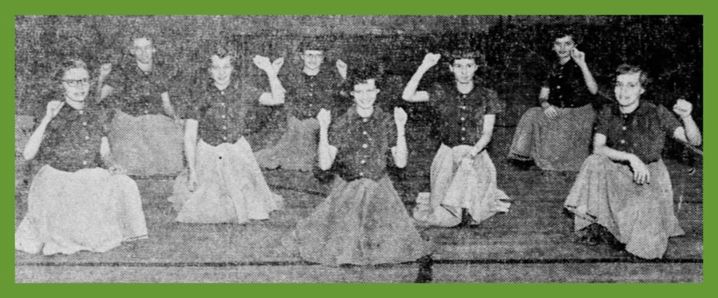 A 1951 photograph of the cheerleaders of the Pine Grove High School, Pine Grove, Schuylkill County, Pennsylvania.