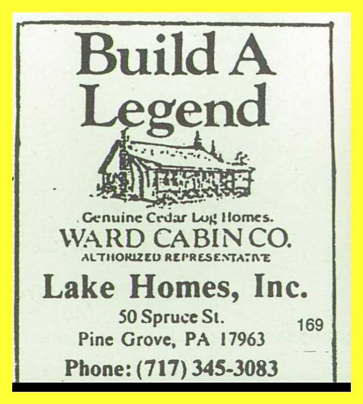 A 1986 advertisement for Lake Homes, 50 Spruce Street, Pine Grove, Schuylkill County, Pennsylvania.