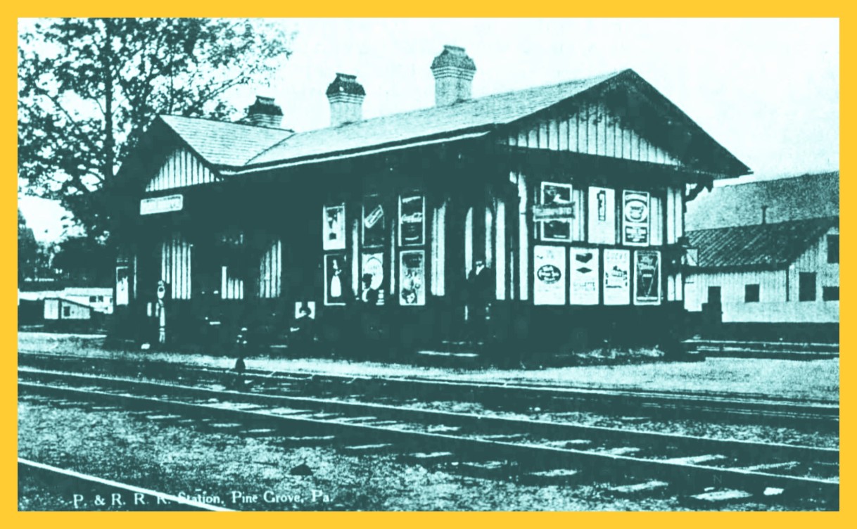 An undated post card view of the Philadelphia and Reading Railroad Station at Pine Grove, Schuylkill County, Pennsylvania. According to the information that was provided with this picture, the original photograph was taken by Alvin C. Schwalm of Pine Grove.