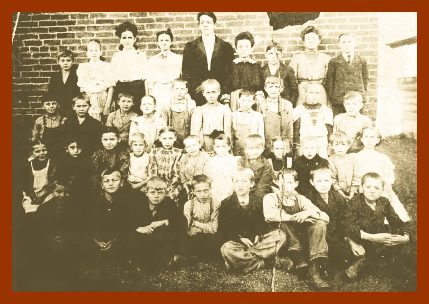 A photograph, circa 1909, of the teacher and students at the Oak Grove School, Pine Grove Township, Schuylkill County, located west of Pine Grove, Oak Grove Road.