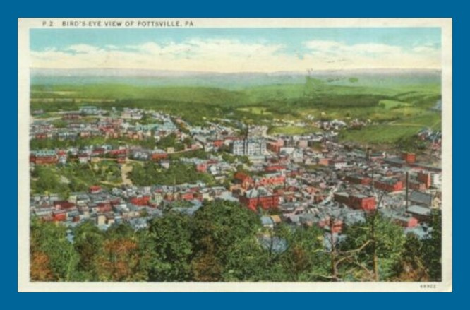 An undated colorized post card birds-eye view of Pottsville, Schuylkill County, Pennsylvania.