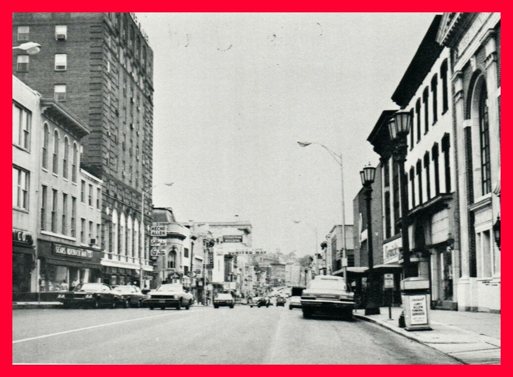 An undated photo post card view of the Centre Street Business District in Pottsville, Schuylkill County, Pennsylvania.