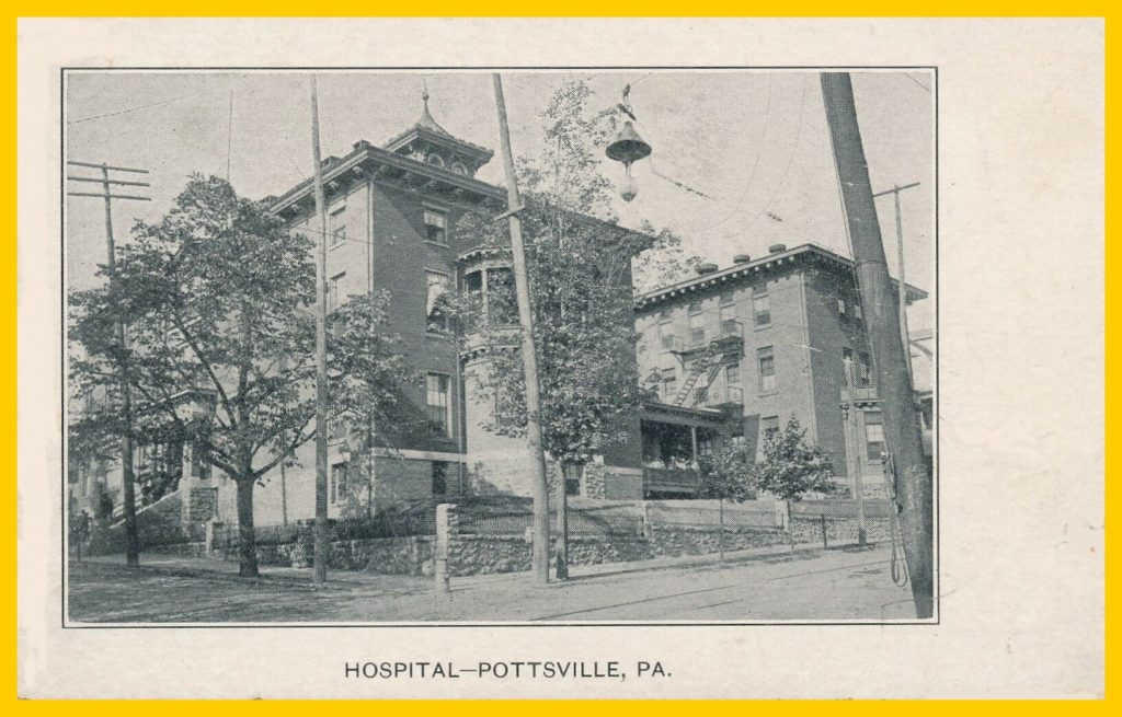 An undated photo post card view of Pottsville Hospital, Pottsville, Schuylkill County, Pennsylvania.