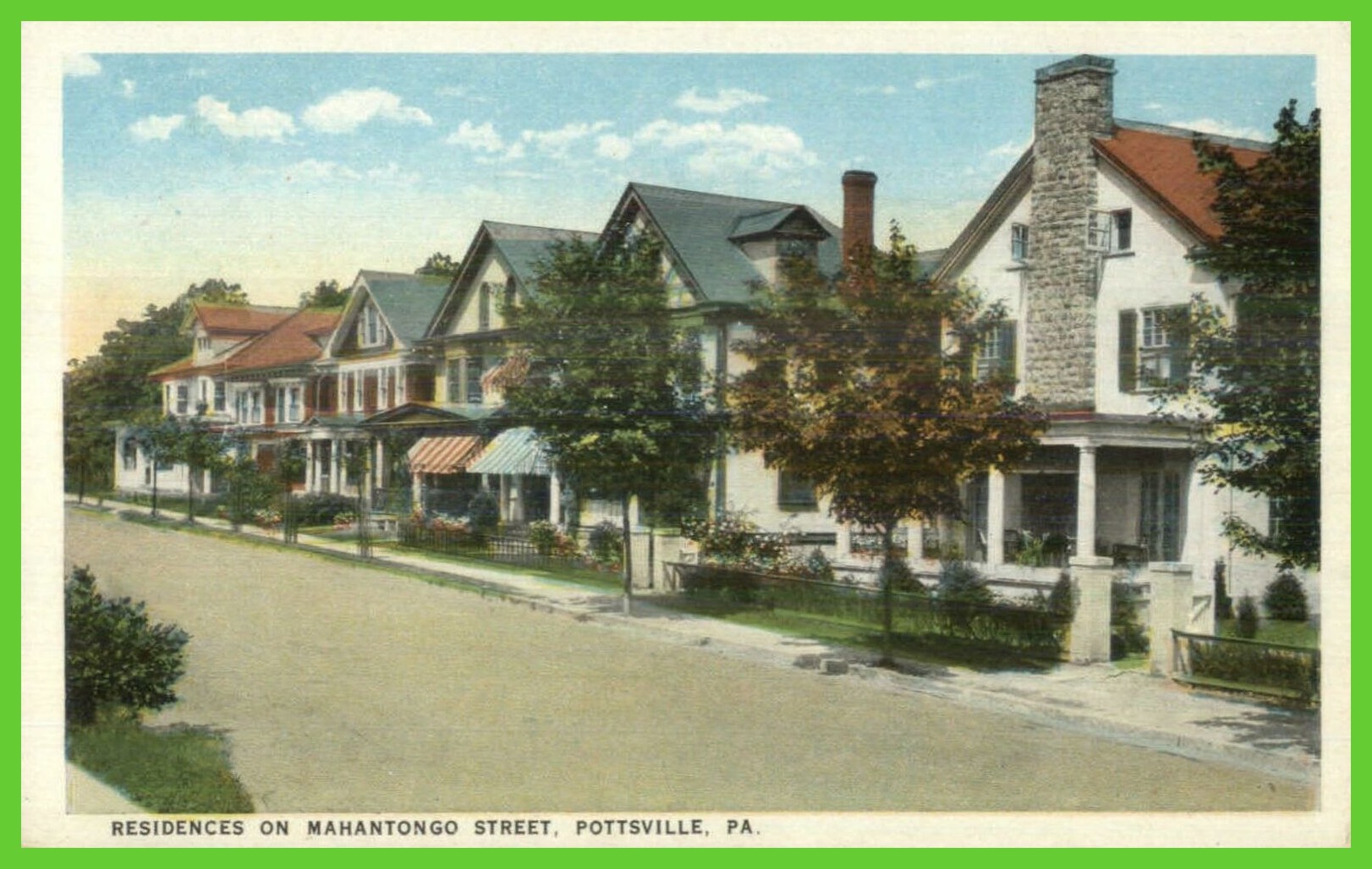 An undated colorized post card view of residences on Manantongo Street, Pottsville, Schuylkill County, Pennsylvania.