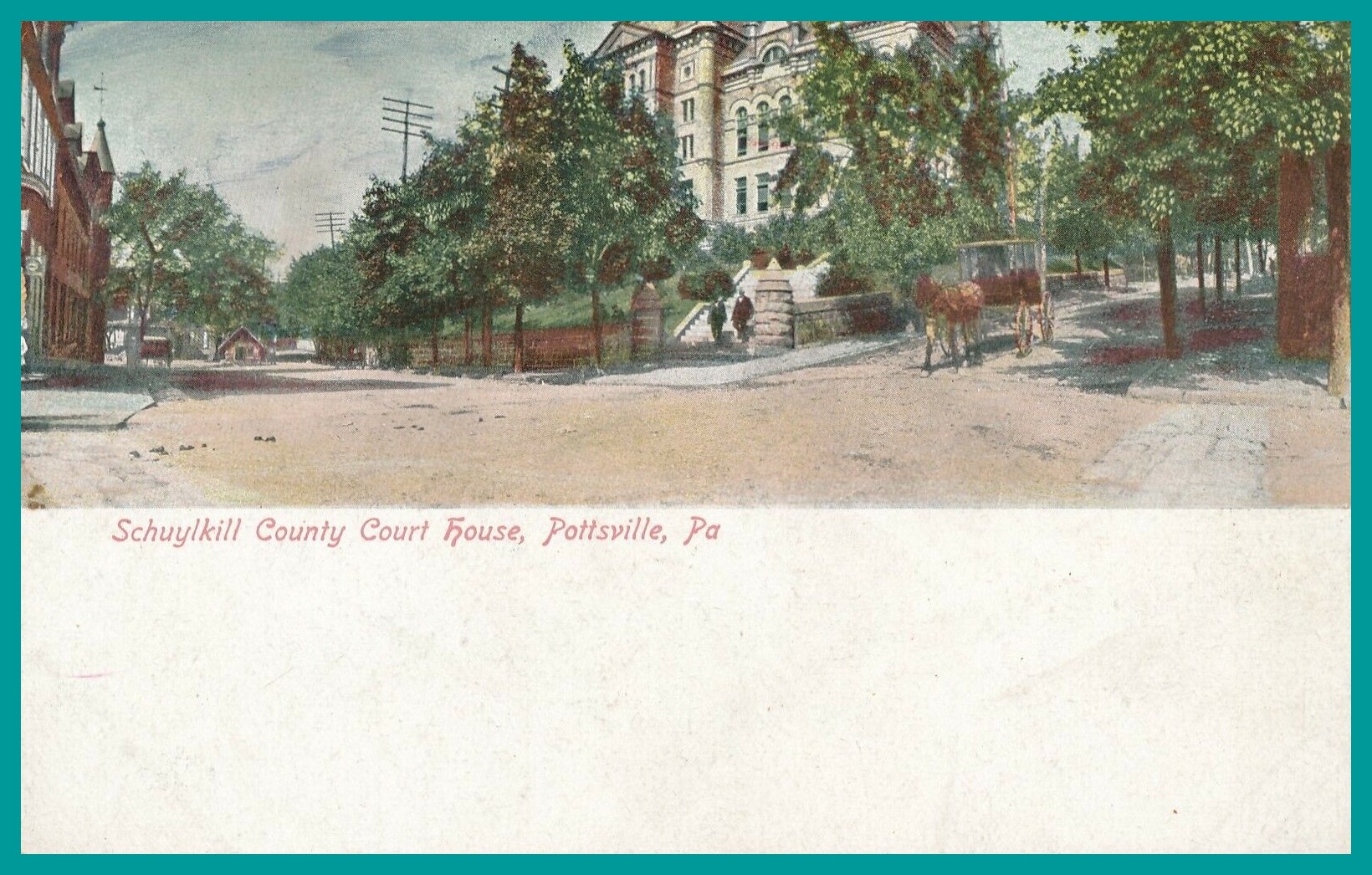 An undated colorized post card view of the Schuylkill County Court House, Pottsville, Schuylkill County, Pennsylvania.