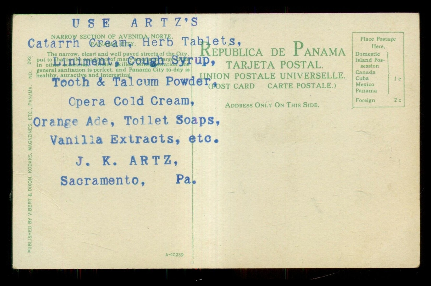 USE ARTZ’s Catarrh Cream, Herb Tablets, Liniment, Cough Syrup, Tooth & Talcum Powder, Opera Cold Cream, Orange Ade, Toilet Soaps, Vanilla Extracts, etc.