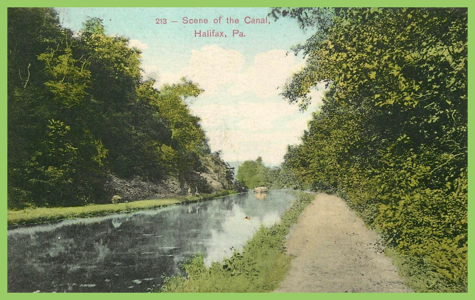 An undated colorized post card scene of the canal at Halifax, Dauphin County, Pennsylvania.