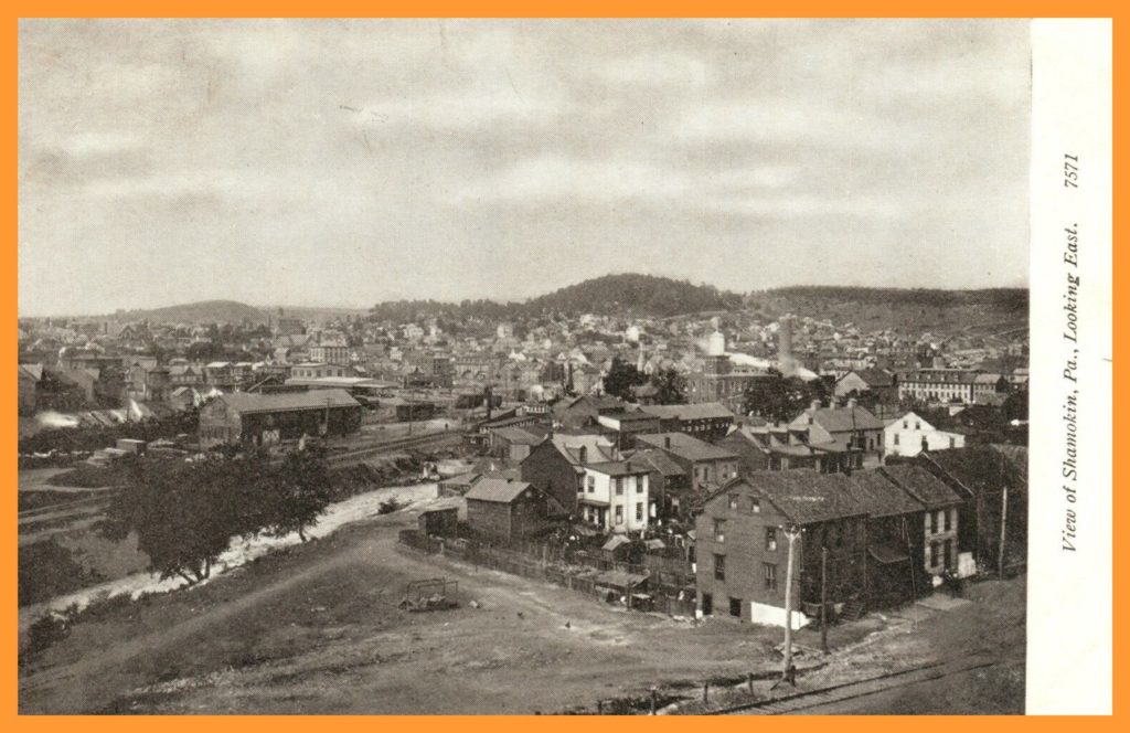 An undated photo post card birds-eye view (looking east), of Shamokin, Northumberland County, Pennsylvania.