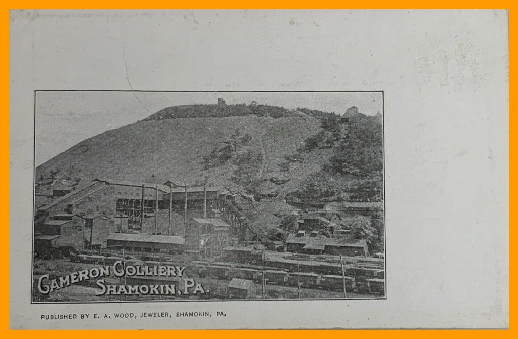 An undated photo post card view of the Cameron Colliery, Shamokin, Northumberland County, Pennsylvania.
