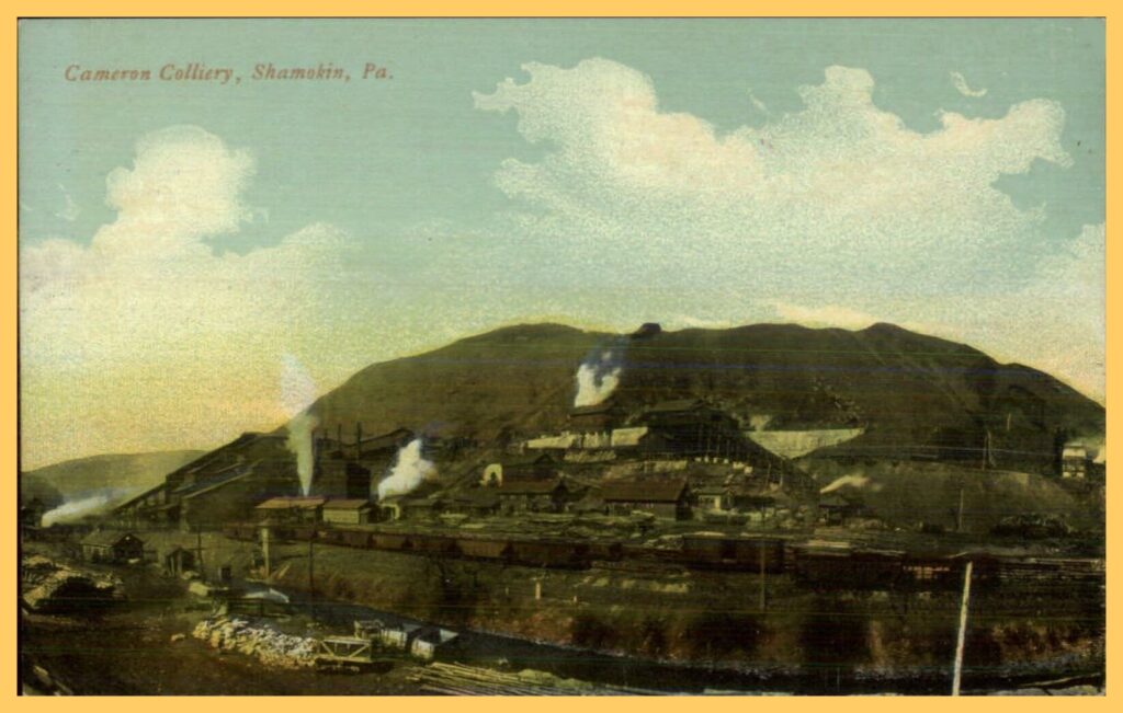 An undated colorized post card view of the Cameron Colliery, Shamokin, Northumberland County, Pennsylvania.
