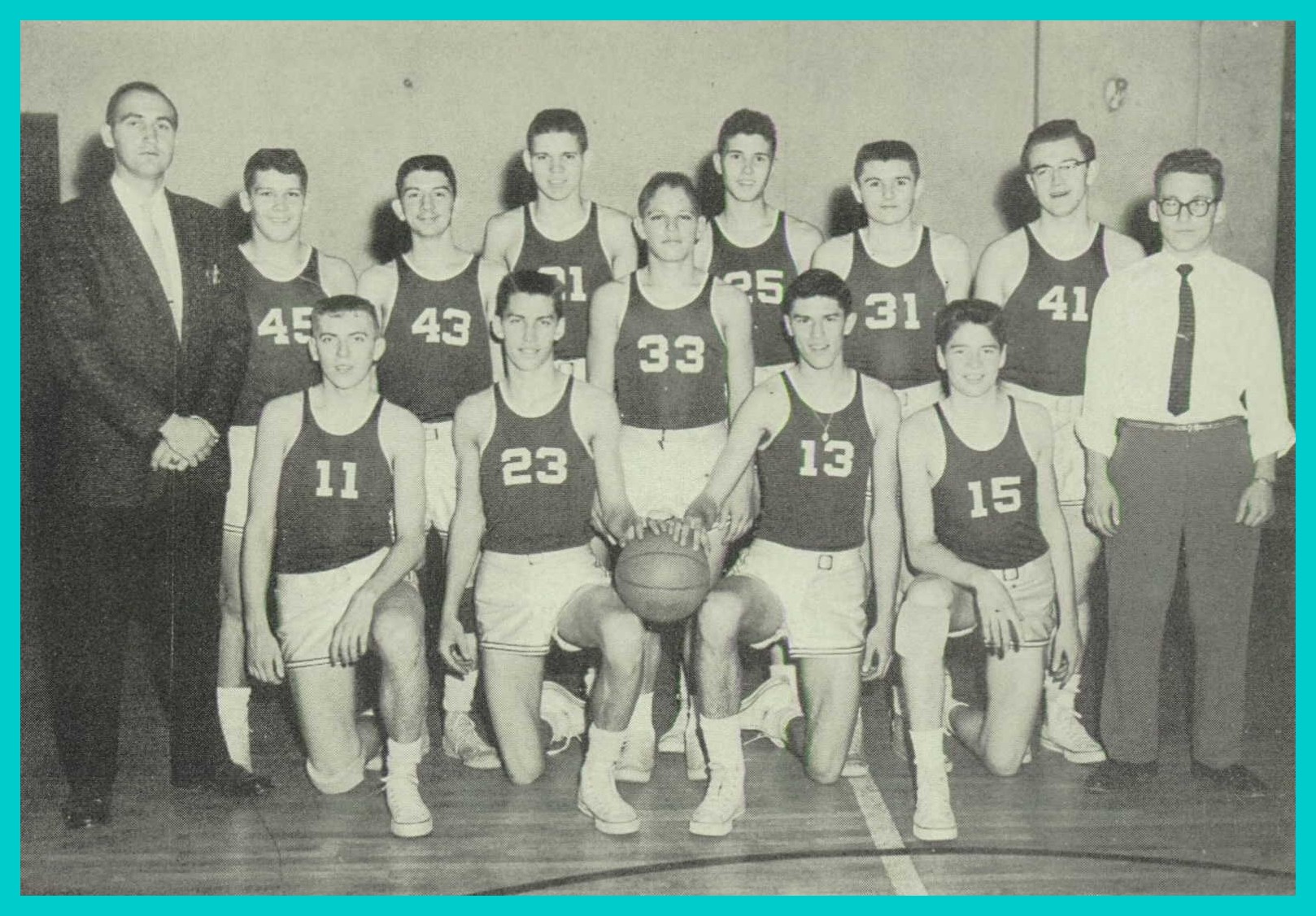 A 1959 photograph of the boys’ basketball team of the Shamokin Catholic High School, Shamokin, Northumberland County, Pennsylvania.
