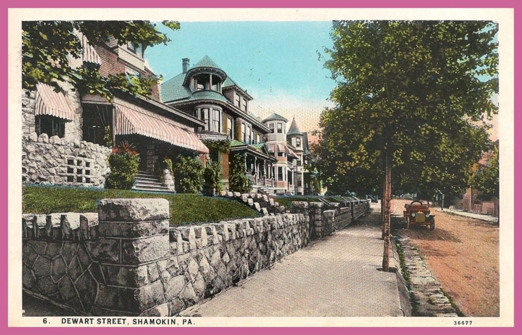 An undated colorized post card view of Dewart Street, Shamokin, Northumberland County, Pennsylvania.
