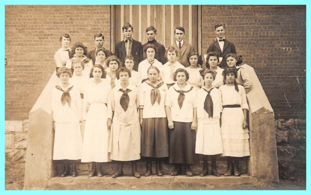 A real photo post card view of a graduating class (possibly 1910) from the Shamokin High School, Shamokin, Northumberland County, Pennsylvania.