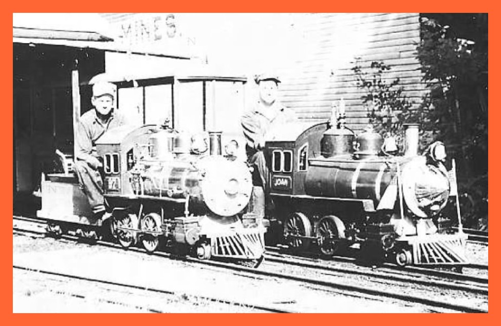 Two photographs of miniature train rides operating at Edgewood Park, Shamokin (Coal Township), Northumberland County, Pennsylvania.