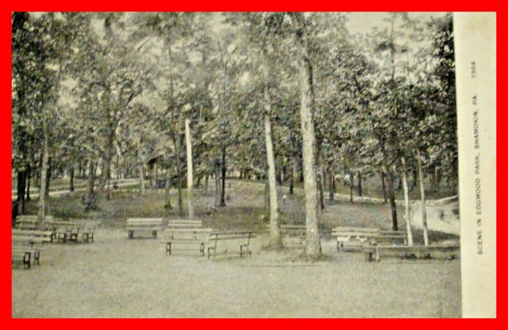 An undated photo post card view of a scene in Edgewood Park, Shamokin, Northumberland County, Pennsylvania.