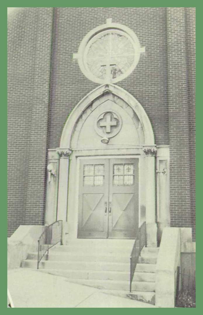 A 1958 photograph of the front door of St. Michael’s Church, Shamokin, Northumberland County, Pennsylvania.