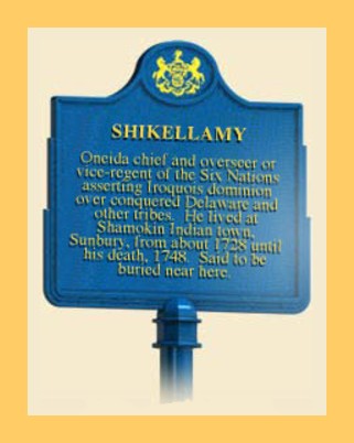 The historical marker at Sunbury, Northumberland County, Pennsylvania, for Shikellamy,: