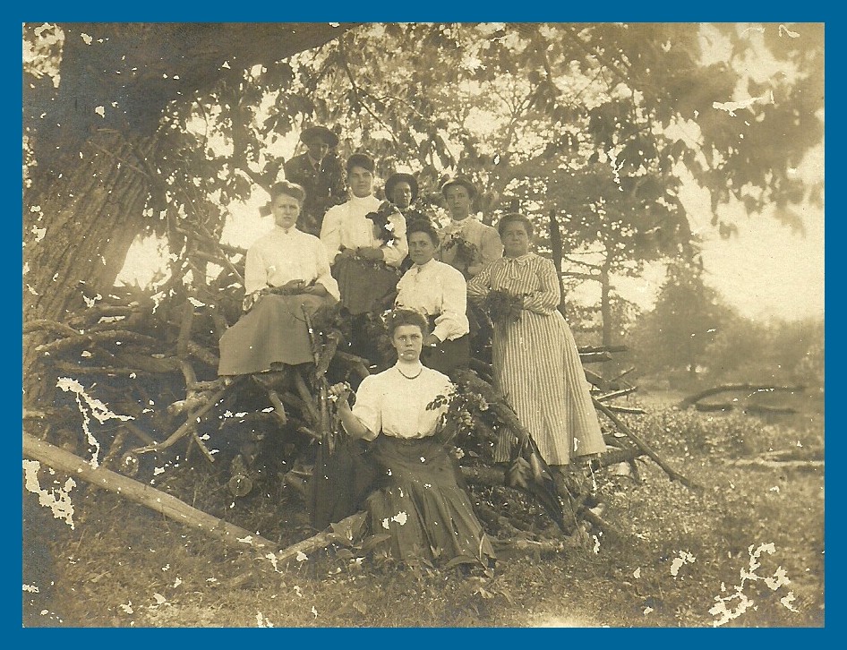 Positively identified are: (#5) Mable [Riegle] Evitts; and (#6) Elizabeth “Lizzie” Riegle. Some say (#1) is Beulah Evitts.