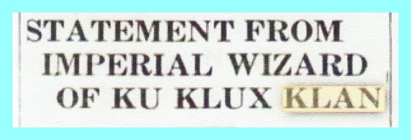 STATEMENT FROM IMPERIAL WIZARD OF KU KLUX KLAN
