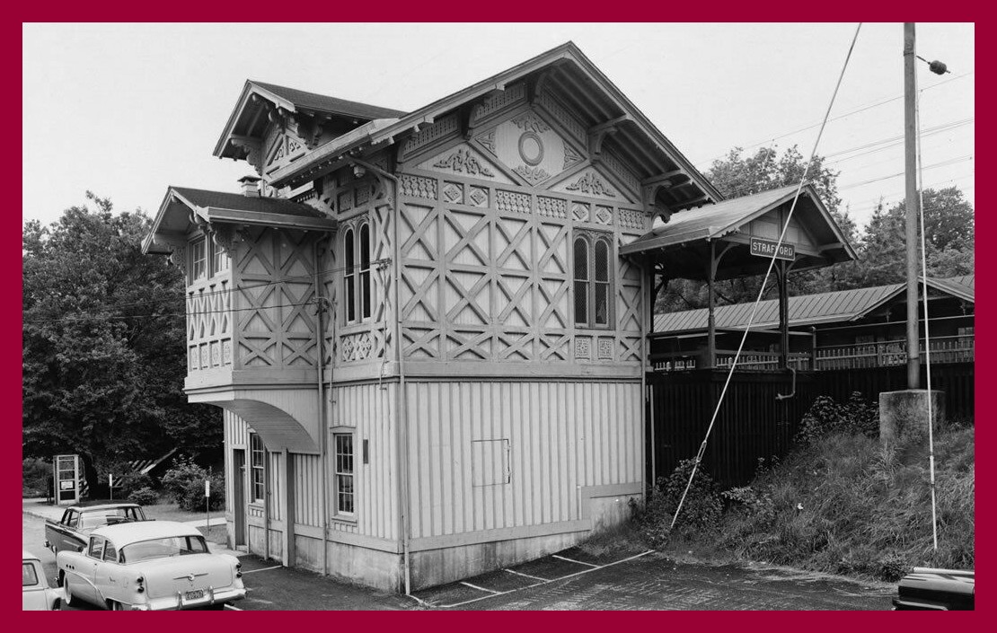 A 1958 photograph of the Pennsylvania Railroad Station at Strafford, Chester County, Pennsylvania.