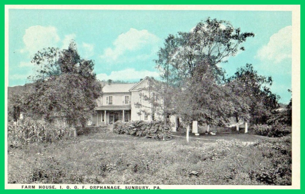 An undated colorized post card view of the Farm House at the I. O. O. F. Orphanage, Sunbury, Northumberland County, Pennsylvania.