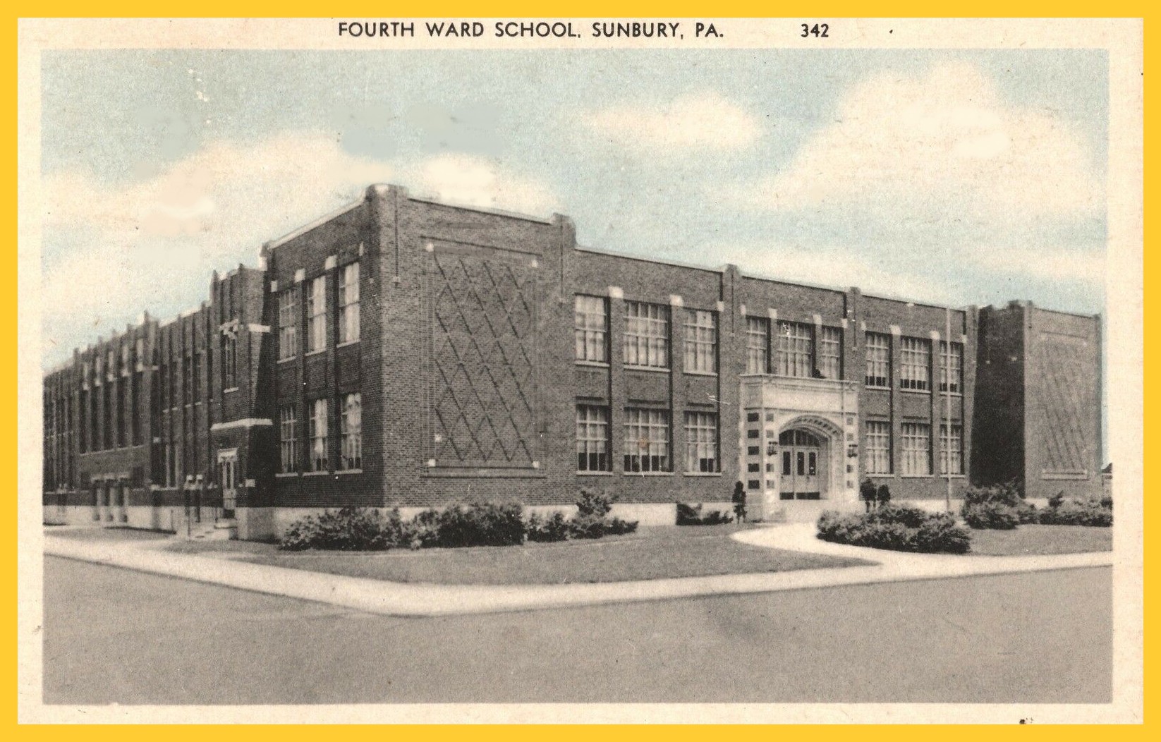 An undated colorized photo post card of the Fourth Ward School, Sunbury, Northumberland County, Pennsylvania.
