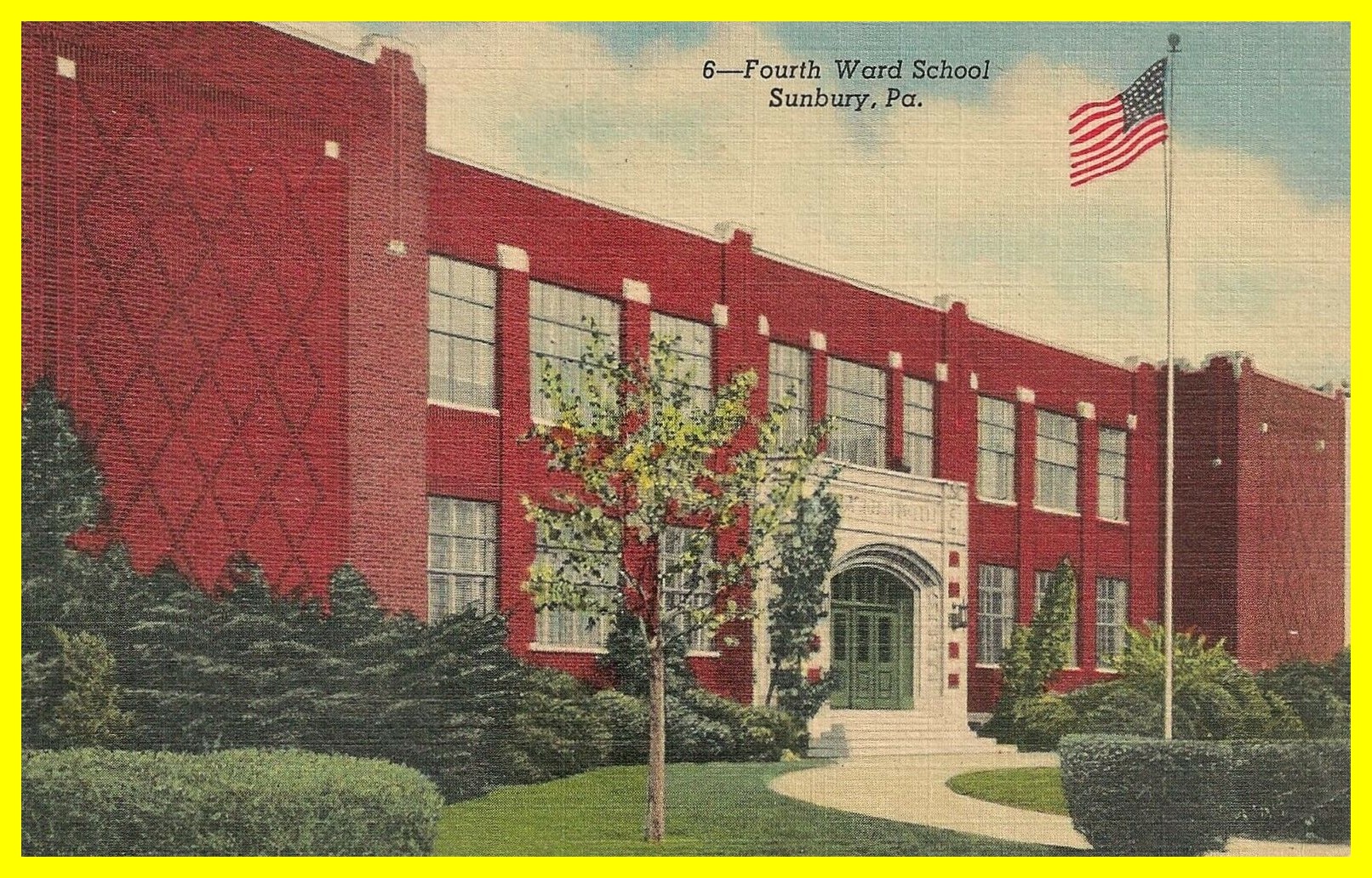 An undated colorized post card view of the Fourth Ward School, Sunbury, Northumberland County, Pennsylvania.