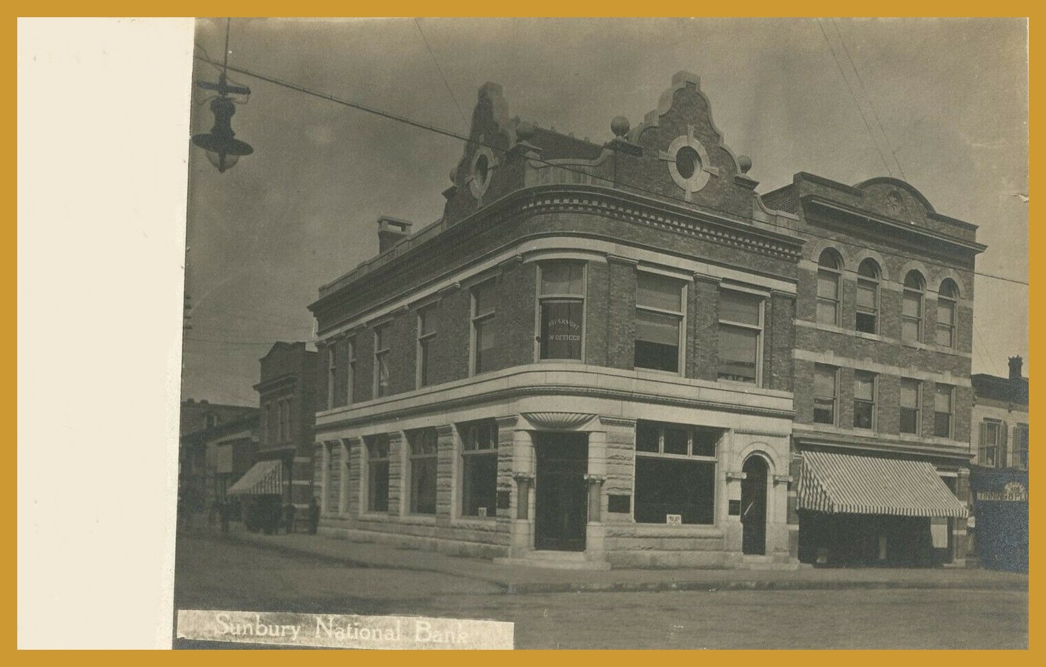 An undated photo post card view of the Sunbury National Bank, Sunbury, Northumberland County, Pennsylvania.