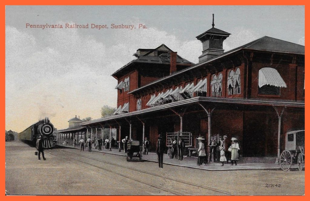 An undated picture post card view of the Pennsylvania Railroad Station at Sunbury, Northumberland County, Pennsylvania.