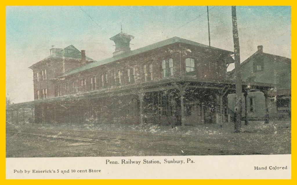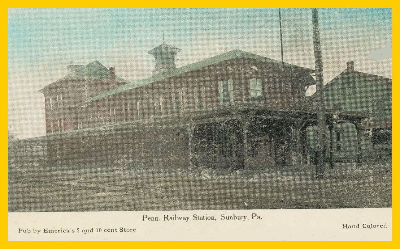 An undated picture post card view of the Pennsylvania Railroad Station at Sunbury, Northumberland County, Pennsylvania.