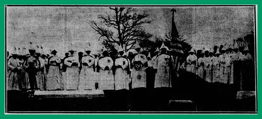 A newspaper photograph from March 31, 1925, of the Ku Klux Klan’s participation in the funeral of Jennie Kissinger at the Penbrook Cemetery, Penbrook, Dauphin County, Pennsylvania. The photo appeared in the Harrisburg Telegraph of that date. Note: if anyone has a better copy of this photo, it can be posted here.