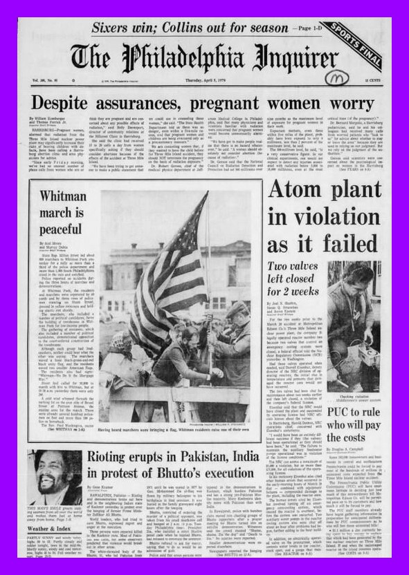 Three Mile Island – Philadelphia Inquirer, 5 April 1979