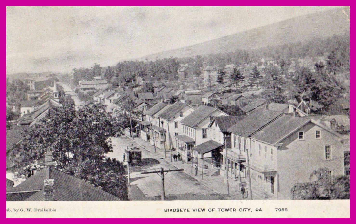 Tower City – Birds-Eye View An undated birds-eye post card view of Tower City, Schuylkill County, Pennsylvania. This card was produced by G. W. Dreibelbis. _____________________________________ Corrections and additional information should be added as comments to this post. Share this: Share on X (Opens in new window) X Share on Facebook (Opens in new window) Facebook Like this:Like Loading... Related
