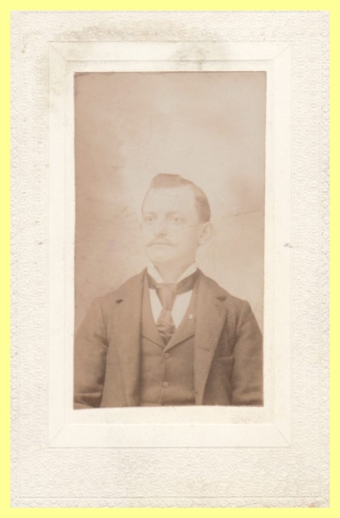 An undated portrait photograph of a man. The photographer was J. F. Miller, “Photo Artist”, Packerton, Carbon County, Pennsylvania.