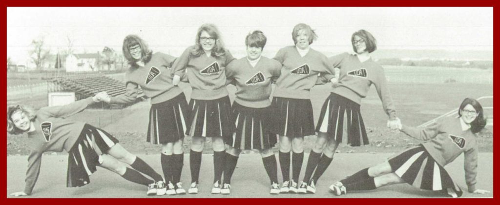 A 1969 photograph of the cheerleaders of the Upper Dauphin Area High School, Elizabethville, Dauphin County, Pennsylvania.