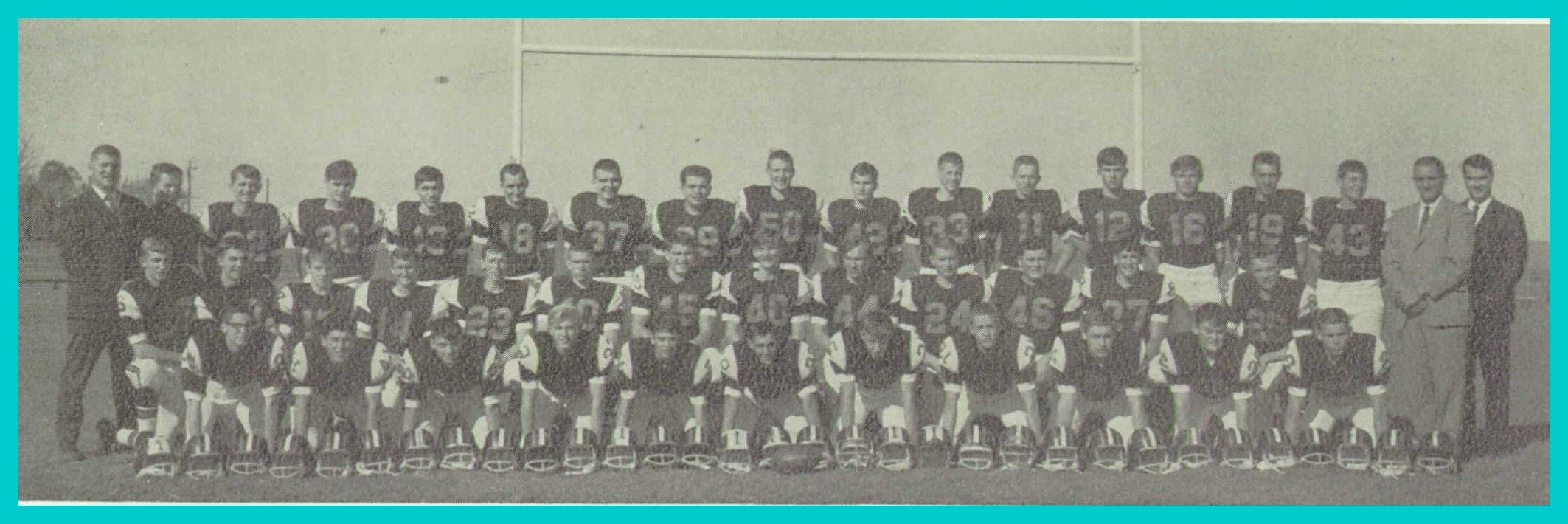 A 1965 photograph of the football team of the Upper Dauphin Area High School, Elizabethville, Dauphin County, Pennsylvania.
