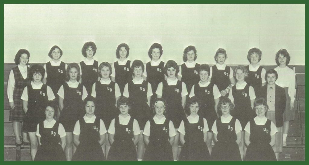 A 1963 photograph of the girls’ basketball team of the Upper Dauphin Area High School, Elizabethville, Dauphin County, Pennsylvania.