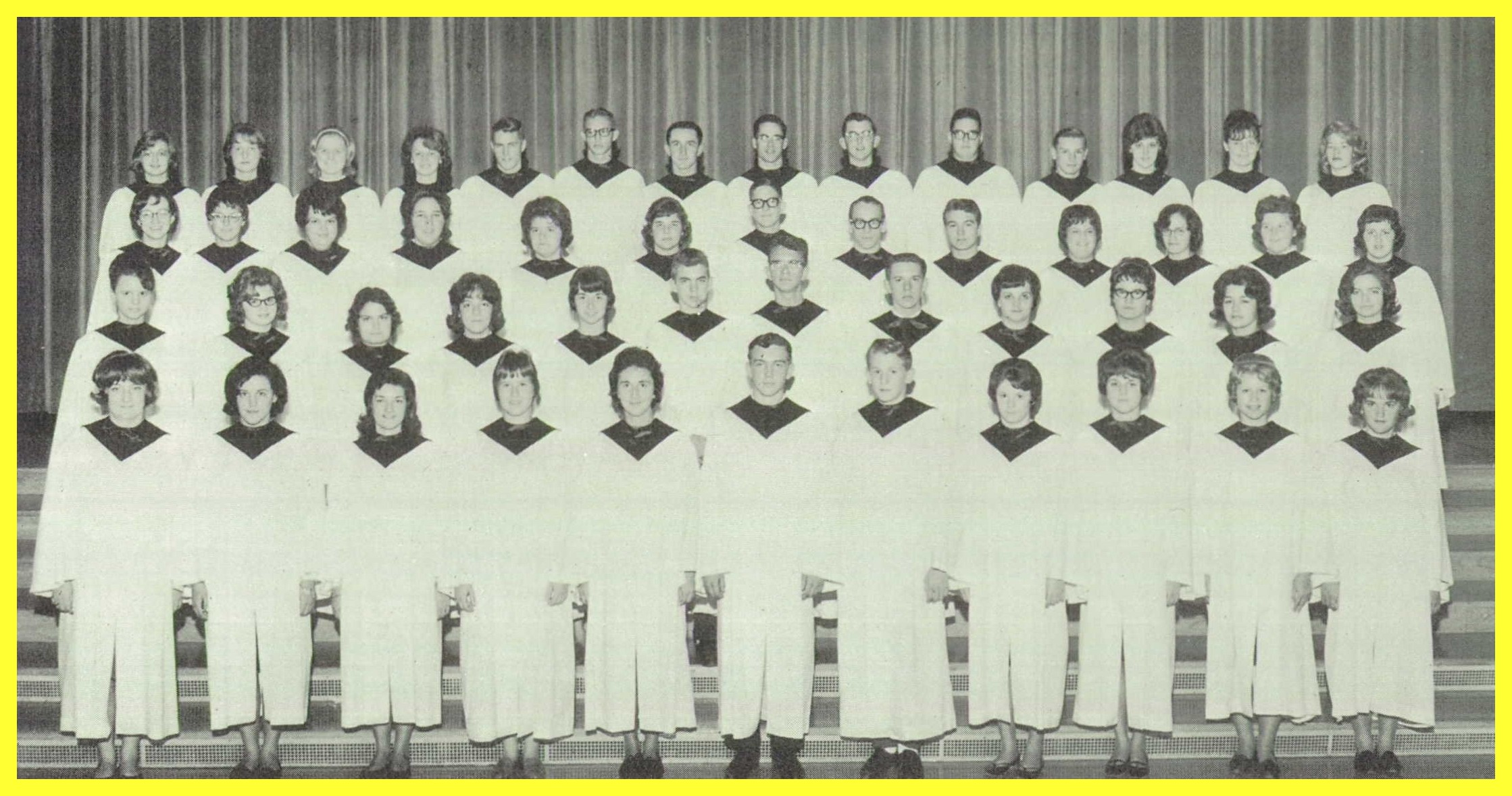 A 1965 photograph of the senior chorus of the Upper Dauphin Area High School, Elizabethville, Dauphin County, Pennsylvania.