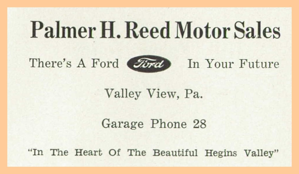 A 1951 advertisement for Palmer H. Reed Motor Sales, Valley View, Schuylkill County, Pennsylvania.