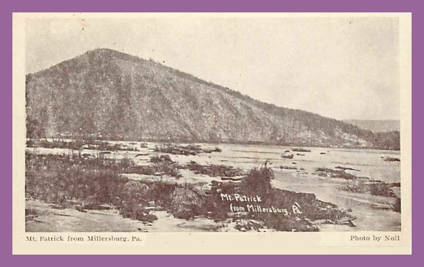 An undated post card view of Mt. Patrick, across the Susquehanna River from Millersburg, Dauphin County, Pennsylvania. The photo is by Noll.