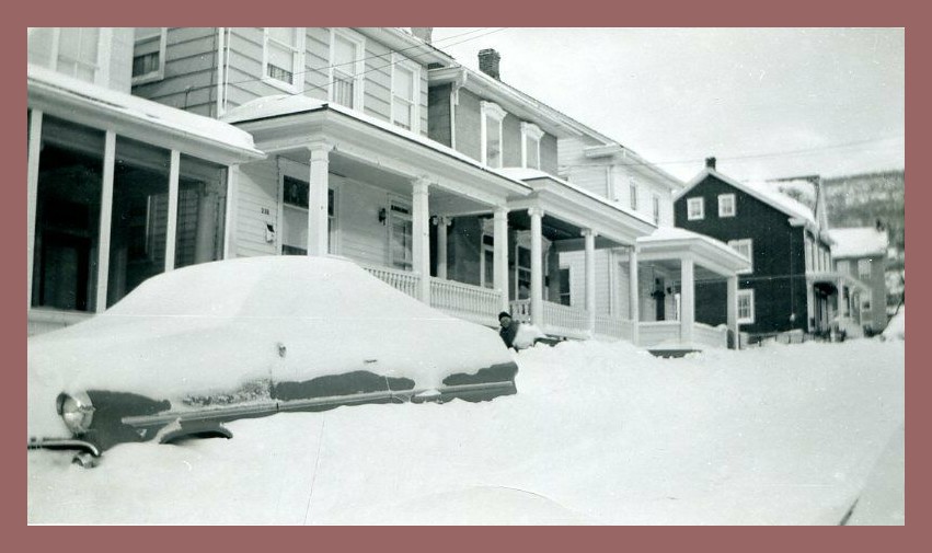 A snapshop photograph dated February 1961 of a snow-covered street in Williamstown, Dauphin County, Pennsylvania.